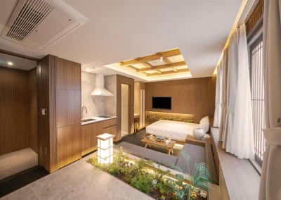 This is the base style of accommodation: a roomy suite with a well-laid-out bed area, a separate living zone or kitchenette, and modern bathroom. Ideal for solo travellers or couples who prefer more space.