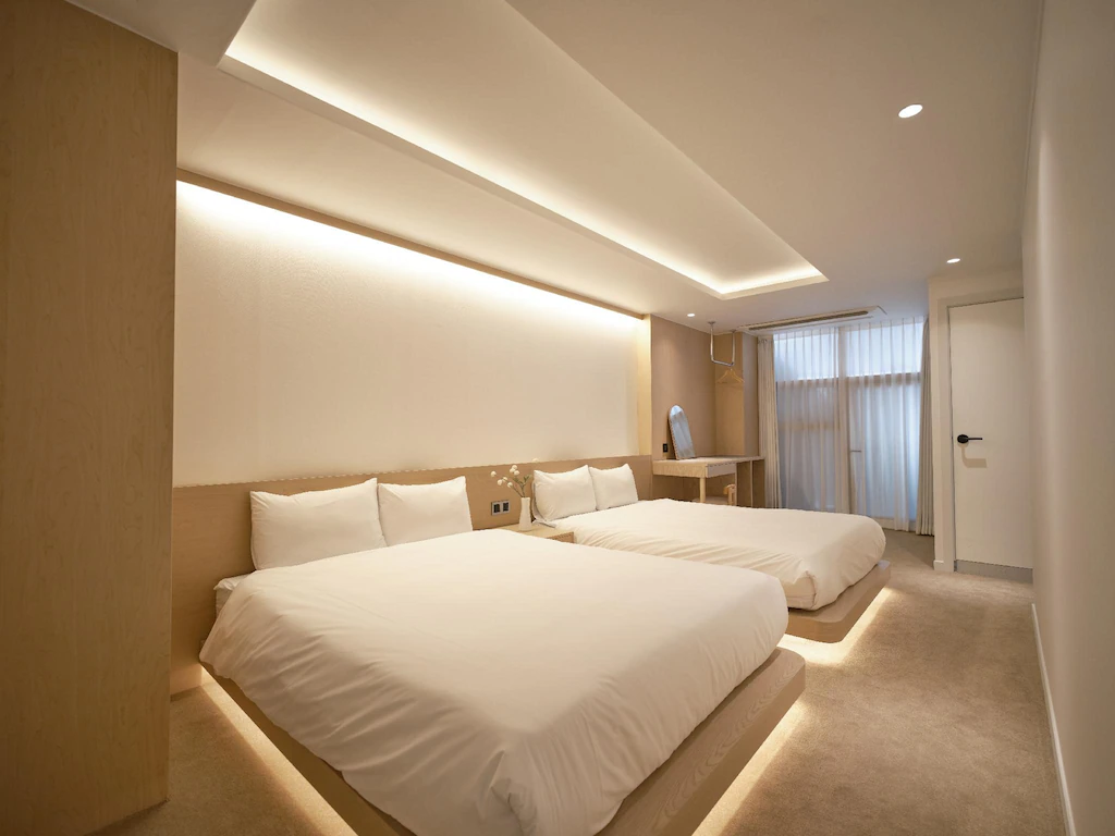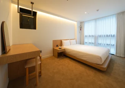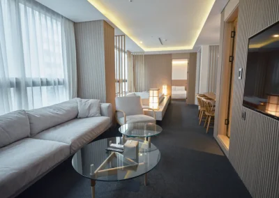 Size: In Seoul, room sizes vary significantly; UH Suite’s suite-style layout means more space than standard hotel rooms.